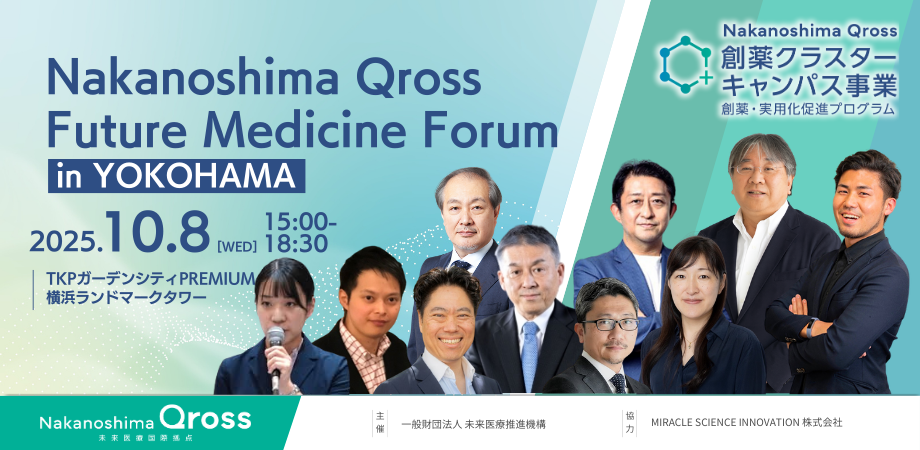 参加対象:国内外スタートアップ、VC、製薬企業、研究者、支援機関、自治体、メディア関係者主催:一般財団法人 未来医療推進機構(Nakanoshima Qross)