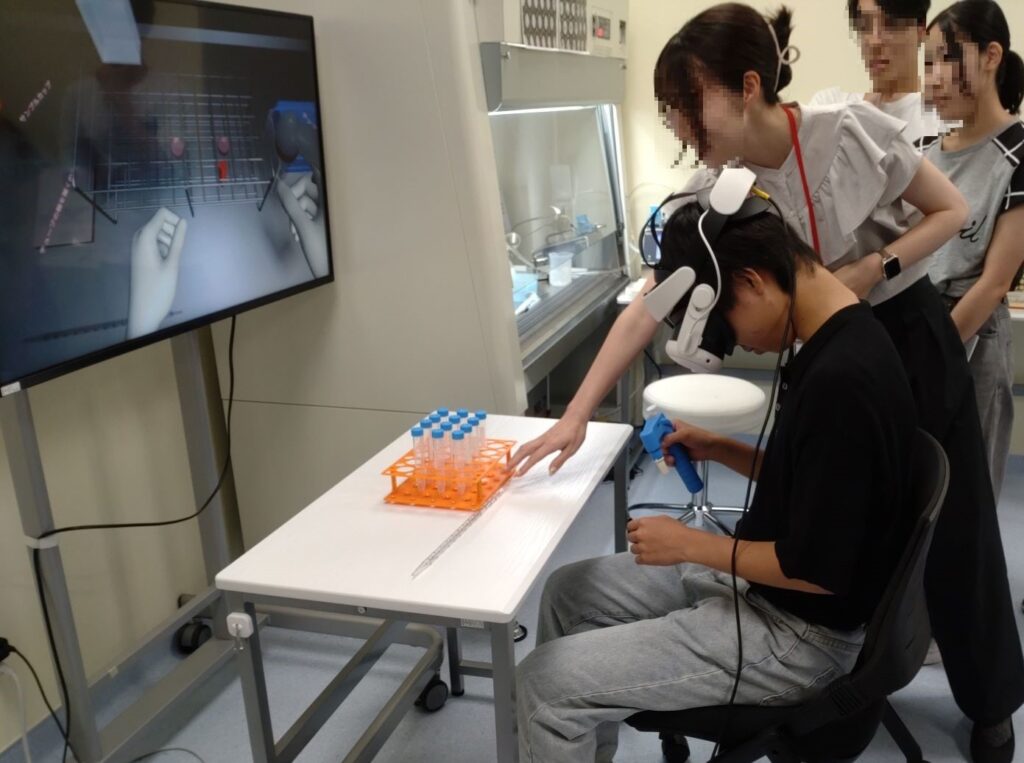 お昼休憩中には、NQパビリオンの⾃由⾒学や、HondaのUNI-ONEの試乗があり、午後はフォーシー社様の講義とアズワン様のラボ⾒学の後、模擬培養液調整の実習が⾏われました。最後に京都⼤学iPS細胞研究財団様とフォーシー社様の研究者の⽅との座談会を開催しました。
