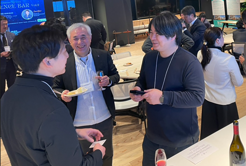 乾杯後のネットワーキングでは、立食形式を活かし、立場や専門分野を超えてフラットに意見交換が行われ、研究や事業、社会実装に関する多様な視点から活発な対話が生まれました。