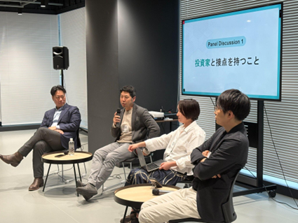 午後の最初のセッションとして実施されたPanel Discussion 1「投資家と接点を持つこと」では、石井氏がファシリテーターを務め、受講生の中から多様なキャリアパスを持つ投資家である久本氏、塩原氏、田宮氏がパネリストとして登壇しました。
