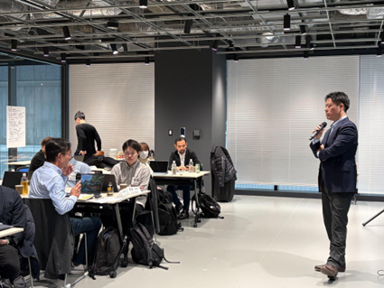 続く「Presentation with Lunch」では、昼食を取りながら各チームによるプレゼンテーションが行われました。医療・創薬分野に関するテーマについて、チーム内で検討・準備した内容が発表され、分野横断的な視点や多様なアプローチが共有される場となりました。